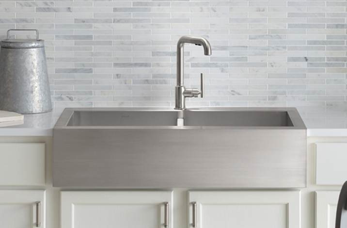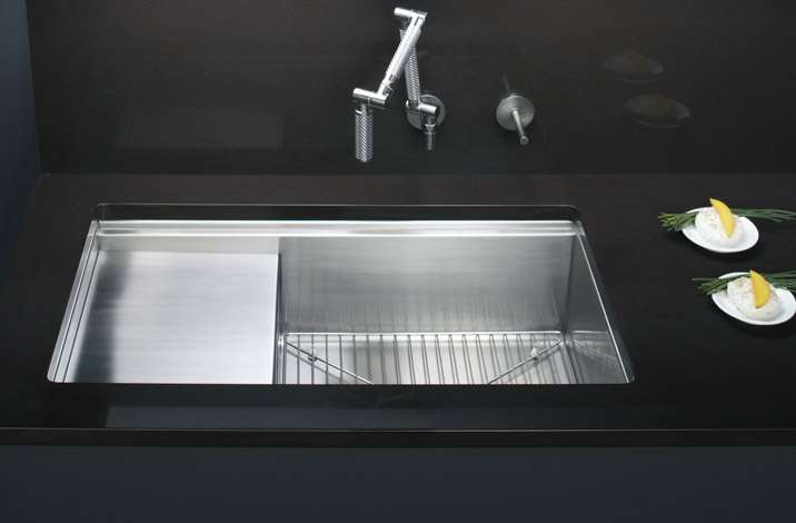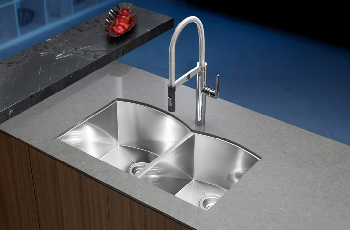 Les éviers fabriqués en acier inoxydable sont connus de tous. De nos jours, ils sont constamment réinventés que ce soit par les différentes formes offertes ou par les multiples options d’installation. Que ce soit à montage en surface, sous comptoir ou à affleurement au comptoir ils sont sans contredit les éviers les plus vendus sur le marché. Les différents alliages de chrome et nickel et les méthodes de fabrication à la main permettent au consommateur d’obtenir un évier avec de hauts standards de qualité.