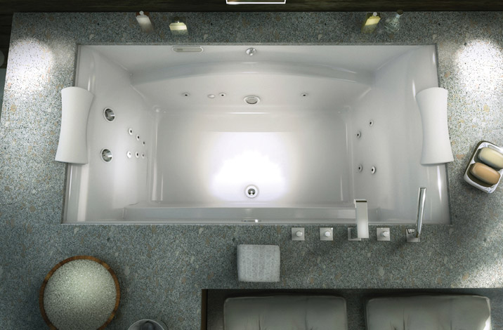 Lignes pures et angles droits font souvent partie des styles plus contemporains et modernes. Nous retrouvons particulièrement ces bains en installation autoportante mais aussi en podium ou encastrée sous une dalle de granit, de marbre ou autre pierre. Pourquoi ne pas y ajouter la chromothérapie, l’aromathérapie et un système de massage pour vous assurer d’une détente réparatrice.